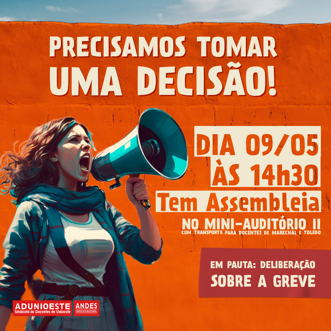A assembleia será na próxima quarta-feira (12), às 14h30 no mini auditório 3 da Unioeste Campus Cascavel